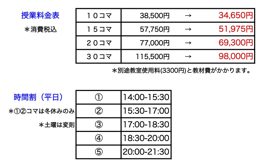 - 指導形式:個別指導 1授業90分